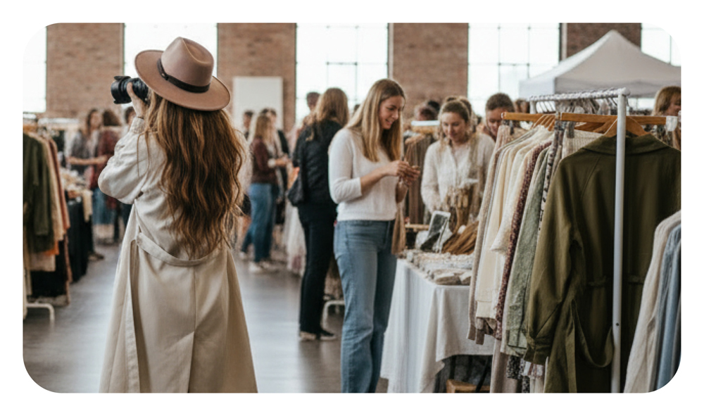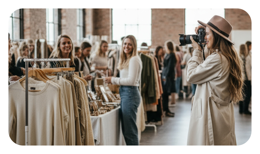 Wir fotografieren und filmen auf unseren Märkten. Das Material nutzen wir für die Website, Printmedien und Social Media von Klamottenliebe. Wenn du nicht aufgenommen werden möchtest, sag das bitte direkt unserem Foto-/Videoteam vor Ort. Deine Einwilligung kannst du später jederzeit widerrufen.